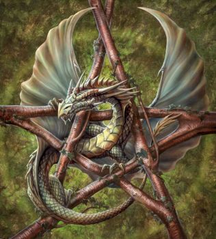 Angin yang melolong-lolong mencabik dedaunan di tubuhnya dan menimbulkan bunyi derakan kayu. Ia bukan sebatang pohon, bukan pula ent. Ia Reinaden, seekro naga bersisik lapis kayu dengan dedaunan tumbuh sepanjang punggungnya. Ia Reinaden, sang naga legendaris yang konon terlincah di udara, yang kini terpaksa turun mendekati daratan, menghindari angin yang hari ini memusuhi dirinya.